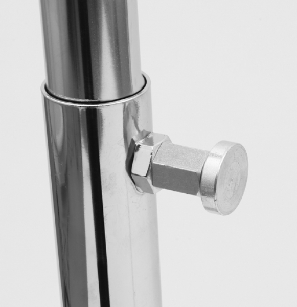 Dauerhaft glanzverchromt, die Verbindungen sind geschweißt, absolut bruchfest. Die Montage ist in nur 20 Sekunden durch einfachen Clickverschluss.