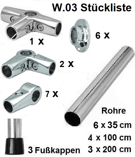 - bei anderen Abmessungen Ihrer Räume Chromrohre mit einer Eisensäge auf die gewünschte Länge kürzen und an der Wand befestigen